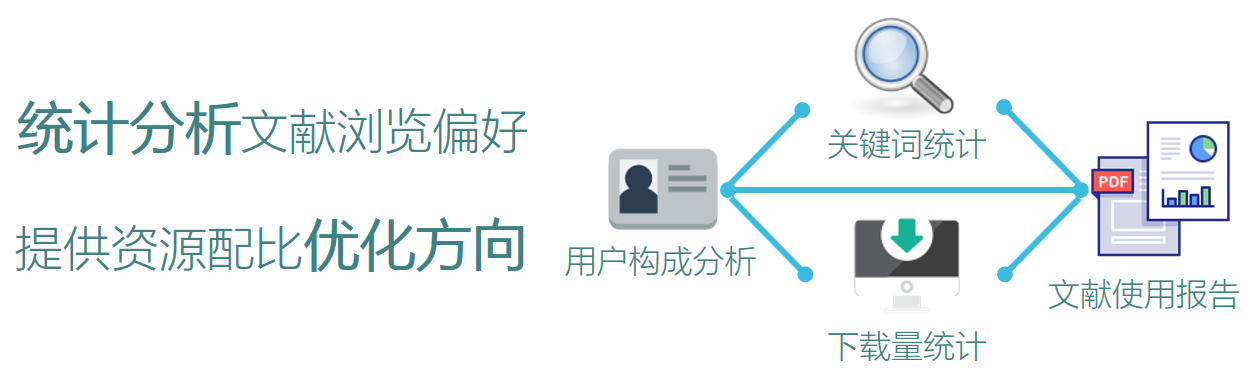 網(wǎng)瑞達(dá)Web 發(fā)布與管理系統(tǒng)與LDAP/RADIUS 對接,內(nèi)外網(wǎng)用戶統(tǒng)一通過代理服務(wù)器訪問,統(tǒng)一認(rèn)證身份,代理服務(wù)器精確統(tǒng)計用戶身份、相關(guān)搜索關(guān)鍵詞和文獻(xiàn)下載,對圖書館資源使用情況全面統(tǒng)計與分析,可生成相關(guān)分析報告,為決策者提供資源配比優(yōu)化方向。